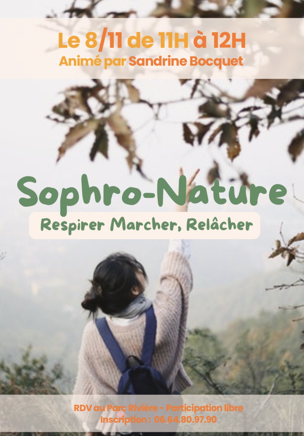 Suite au succès du premier atelier de Sophro Nature, j’ai le plaisir de proposer une nouvelle séance le samedi 8 novembre.